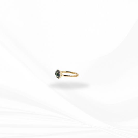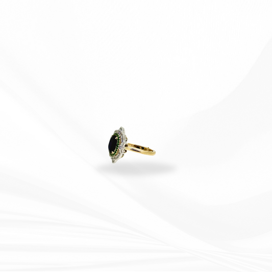 Sapphire, Tsavorite & Diamond Halo Two-Tone Ring