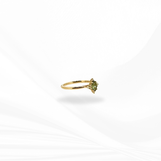 North Star - Oval Green Tourmaline with Natural Diamond Ring
