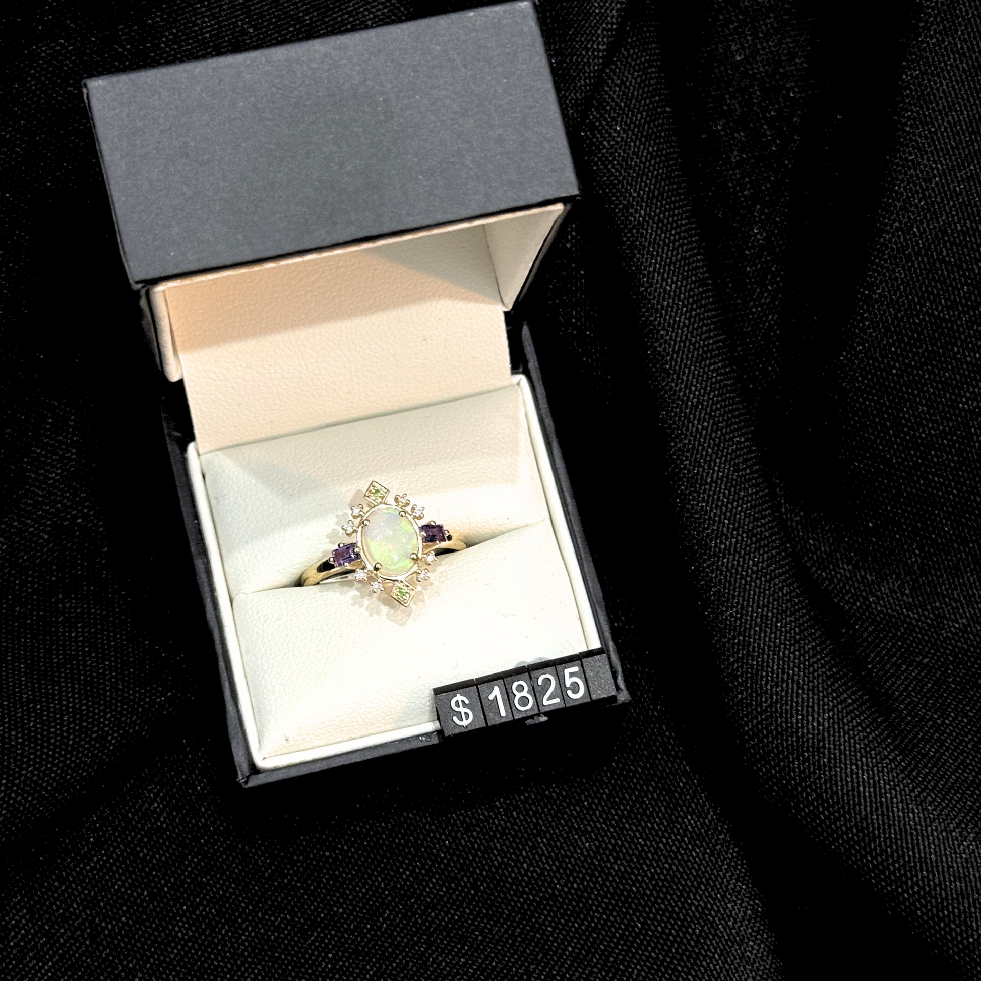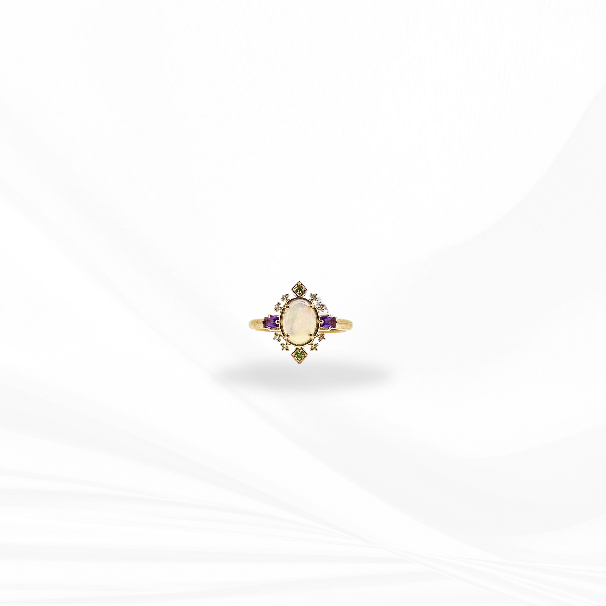 Amethyst, Opal, Green Tsavorite & Lab Diamond Ring